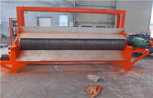 2、順流式磁選機指礦漿移動方向與圓筒移動方向或產品移動方向一致。礦漿從給料箱直接進入圓筒磁系下方,非磁性和磁性弱的礦粒由圓筒下方的間隙排出,磁性礦粒則吸在圓筒外表,隨著圓筒一起旋轉到磁系邊際磁場弱處,由卸礦水管卸到精礦槽。